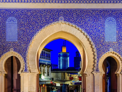 Journey onward to Meknes and the remarkable Roman ruins of Volubilis, where history comes alive among beautifully preserved mosaics. In Fes, step back in time as you explore one of the world’s oldest medieval cities, with its maze of narrow lanes, colourful souks, and traditional crafts.