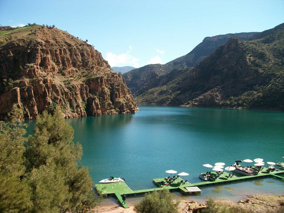 The tour continues through the scenic Middle Atlas Mountains, passing through charming Ifrane and rural landscapes to the tranquil shores of Bin El Ouidane. Enjoy time to relax before travelling via the spectacular Ouzoud Waterfalls back to Marrakech.