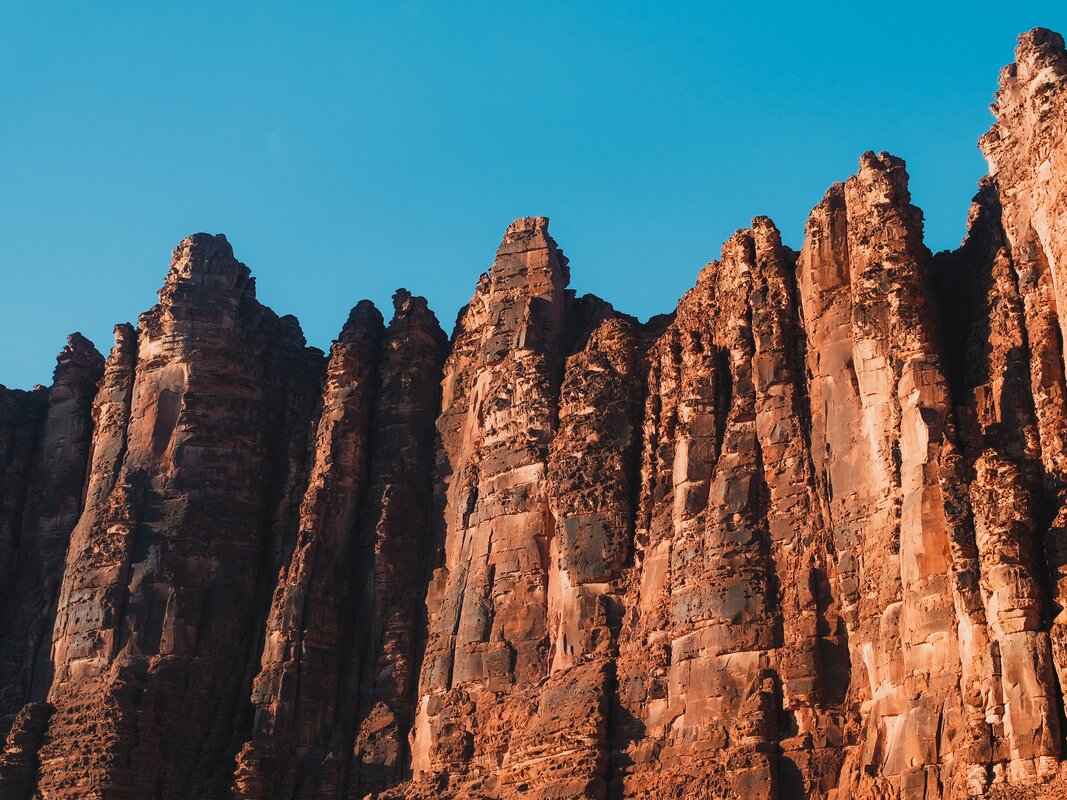 Following a one-hour drive from Tabuk, the adventure truly begins. Your driver engages the 4x4 and navigates across dunes and through deep sand pits, taking you off the beaten path. Along the way, pause for short hikes through canyons and cliffs to fully appreciate the desert’s rugged beauty.