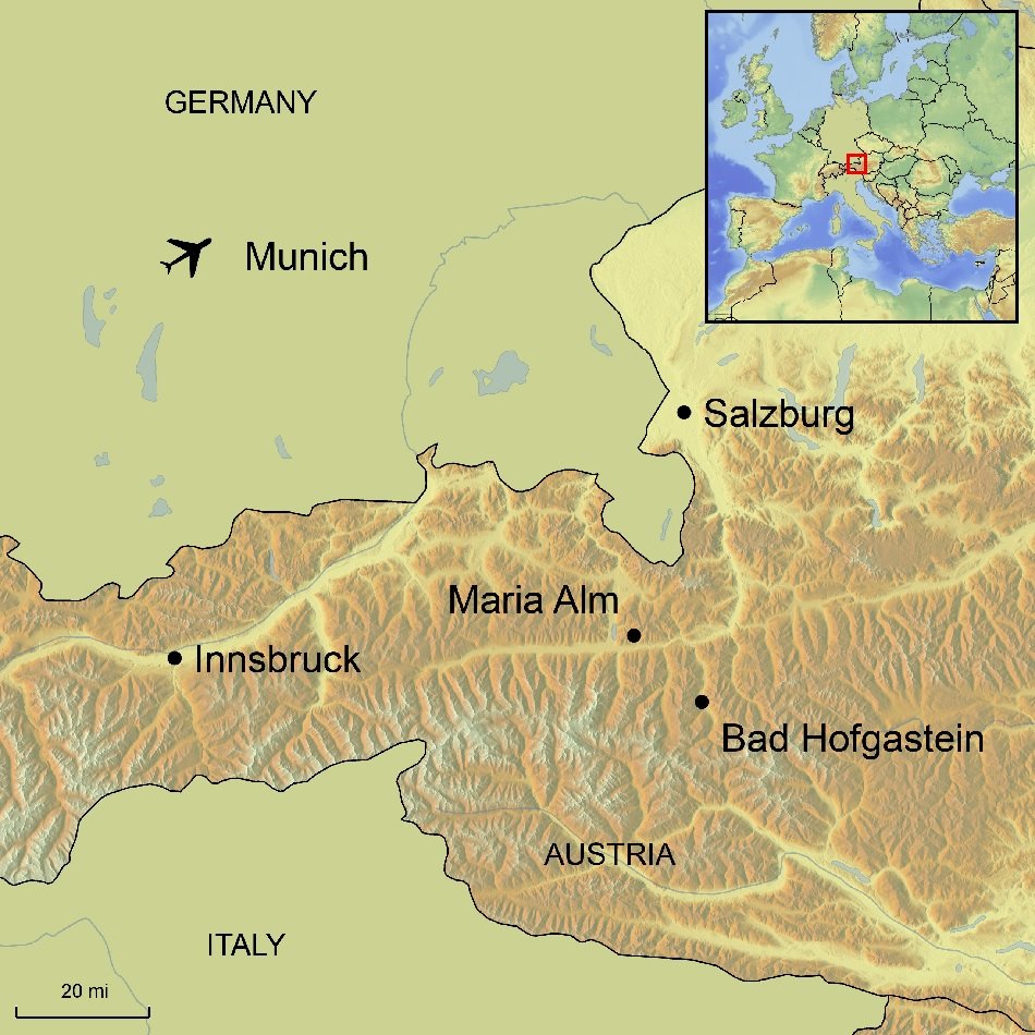 Fly to Munich or Salzburg Airport. On arrival travel by private coach to Hotel Niederreiter in Maria Alm.