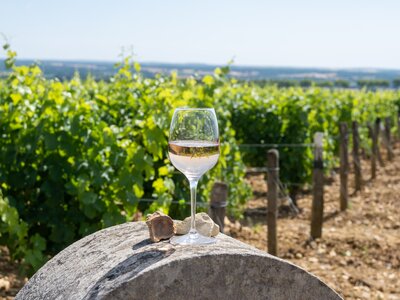You explore the vine‑covered slopes of the Yonne valley south‑east of Auxerre, climbing onto the Vaux Marquis heights above Champs‑sur‑Yonne for expansive views. The route follows an airy ridge via Douzein, Vaupiarry and Lescherelles, passing through open countryside shaped by wine growing. Descending into the heart of Irancy, you walk among renowned vineyards and stone houses before continuing down to the riverside village of Vincelottes, with the option to return via nearby Vincelles.