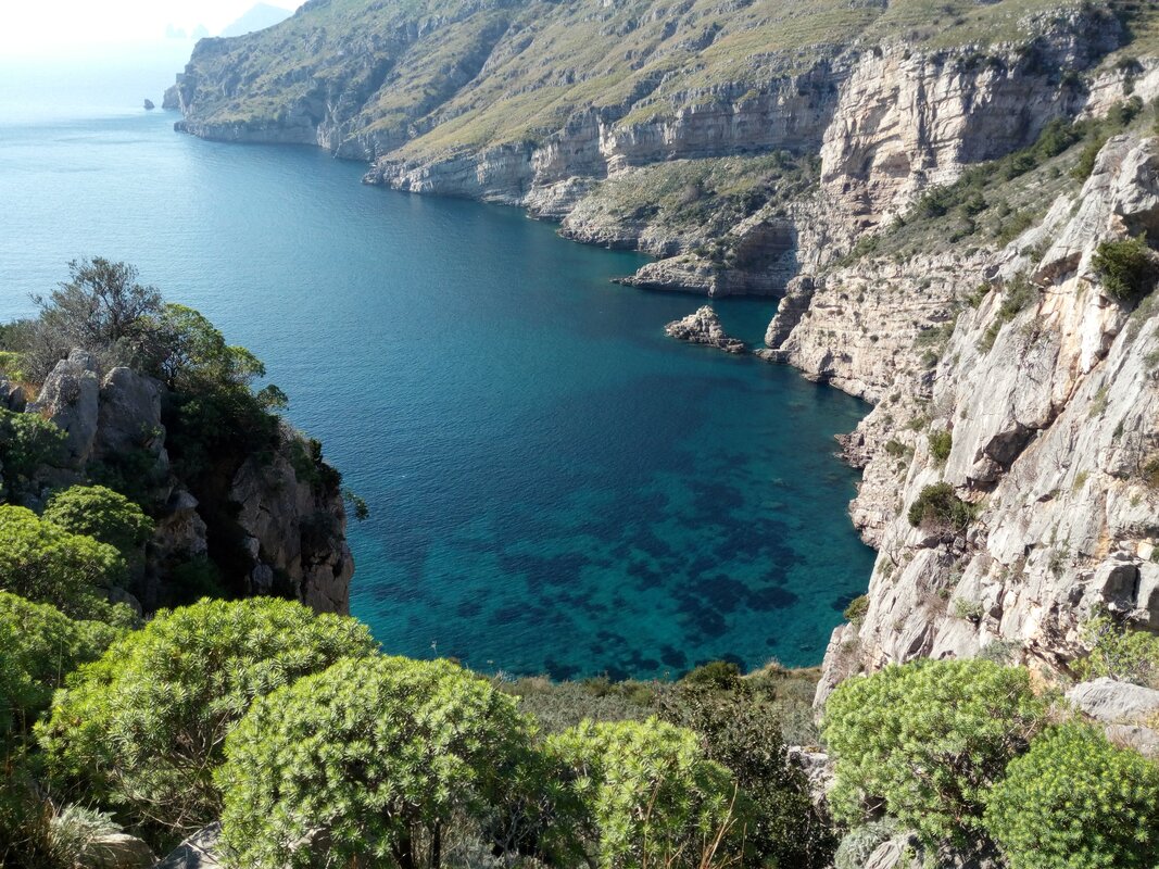Option 2 - For those seeking more of a challenge, the longer walk offers spectacular views of the Bay of Salerno and the dramatic cliffs of the Amalfi Coast: 5 hours, 7 mi, 790m ascent, 770m descent