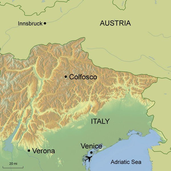 Travel between Venice / Innsbruck and your hotel will be by private transfer, and this takes approximately 3 hours from Venice and 2 hrs 15 minutes from Innsbruck.