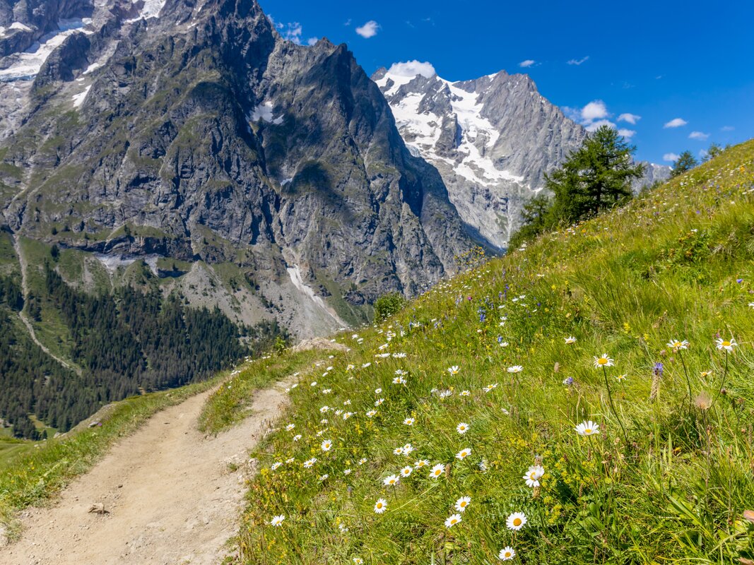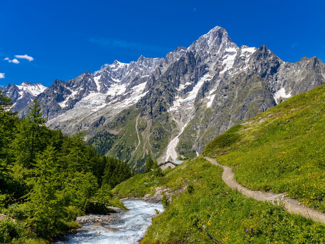 When you base yourself in Courmayeur for a three‑night hiking escape, you place yourself at the heart of some of the most spectacular scenery in the Italian Alps. The moment you step onto the trails, you sense the shift in atmosphere. Compared with the French side of Mont Blanc, everything feels calmer, warmer, and more intimate. The mountains rise just as dramatically, but the valleys feel broader, the light softer, and the rhythm of life slower. Rock towers, hanging glaciers, and steep forested slopes surround you, creating a landscape that feels both powerful and welcoming.