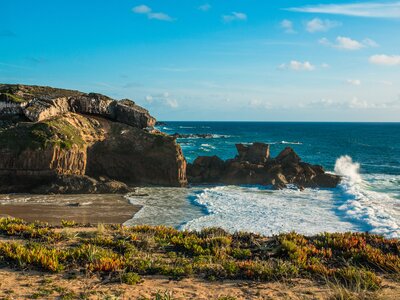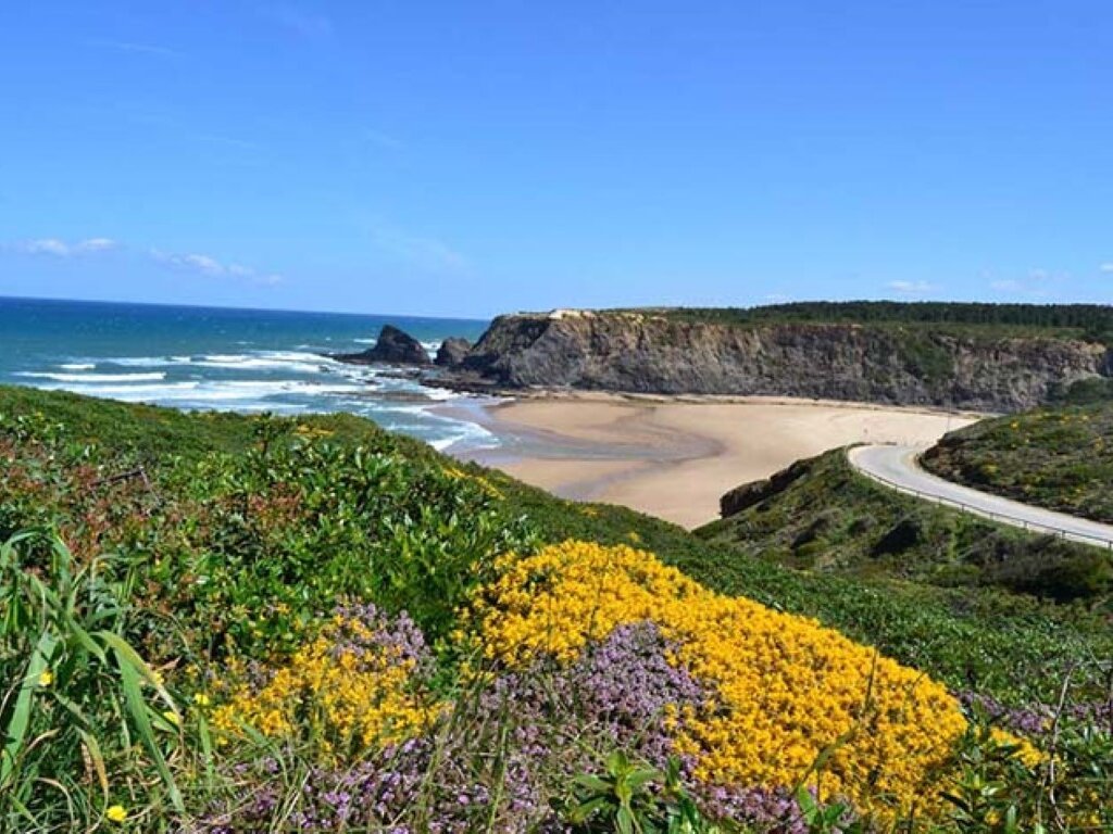 The coastal route offers a dramatic journey along the coastline, providing stunning seascape views, cooling breezes, and towering cliffs. Spring paints the landscape with blooming meadows, wild oregano, and rivers adorned with crystal-clear waters. Traverse through fields of sweet potatoes, maize, and tomatoes as you unravel the secrets of this lesser-known Portuguese region. Immerse yourself in quaint villages, deserted beaches, and the mesmerizing crash of the Atlantic waves.