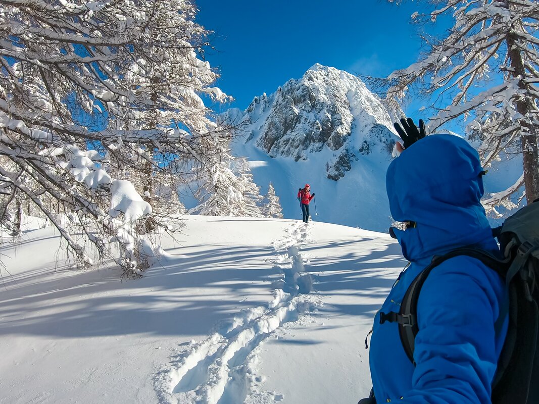 Alongside its natural beauty, this route also offers a fascinating insight into the area’s past. You explore remnants of the historic Rapallo border, including Italian fortifications from the Alpine Wall (Vallo Alpino), adding an intriguing cultural dimension to an already rewarding snowshoe experience.