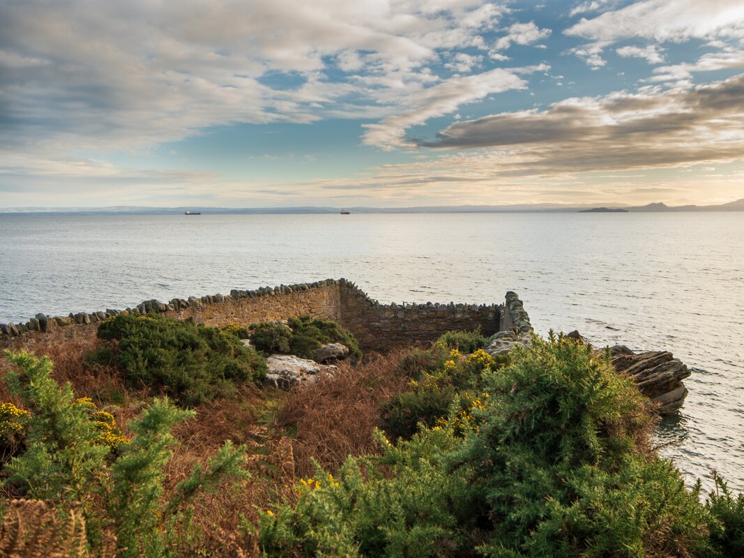 From Pettycur Bay, the trail leads past the charming village of Kinghorn and onward to Kirkcaldy, where Ravenscraig Castle dramatically overlooks the coastline. Continuing along the shore, you reach Dysart, a former royal burgh, where you can explore the Harbourmaster’s House and wander the picturesque alleyways. The path then takes you to West Wemyss, known for its historic charm, before arriving at the East Wemyss Caves, celebrated for their ancient Pictish carvings. The day concludes in the lively seaside town of Leven, where you will spend two nights.