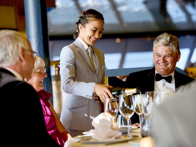 During your cruise, there will be formal and smart casual evenings. On formal evenings, gentlemen are encouraged to wear ‘black tie’, although a dark suit and tie will suffice, with ladies elegantly dressed in cocktail or evening dress. On smart casual evenings, men can wear open-necked shirts, chinos and dark coloured jeans, and women dress or trousers and a top.